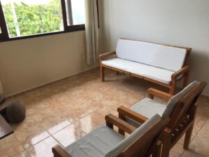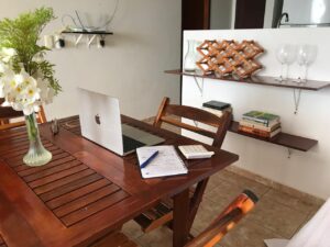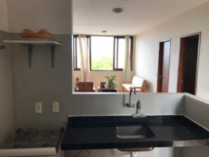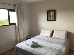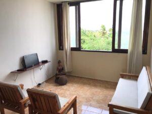O apartamento é muito gostoso, com pé direito alto. Possui uma grande janela na sala com vista para a piscina, horizonte e para os coqueirais o que o torna bem ventilado e iluminado.