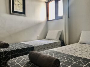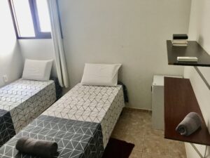 QUARTO 2: Guarda roupa, ar condicionado, 2 camas solteiro, armário, cortina blecaute.