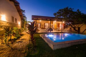 - chuveiro elétrico, chuveiro externo, wifi, sala, cozinha, piscina, jardim.