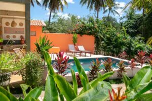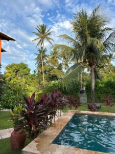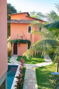 O espaço é composto por 3 casas e 1 chalé. Conta com um confortável lounge com lavabo, piscina, espreguiçadeiras e redário com vista para um belo jardim cercado pela natureza, sendo aqui o espaço perfeito para relaxar após um belo dia de praia.